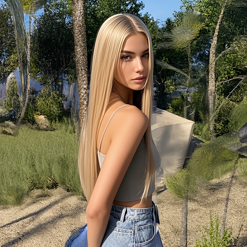 Women' Long Straight Synthetic Wig - Blonde No Bangs -Resistant Hair with Easy Wear | Look for Daily Use & Parties | Quick-Style Change (No Tools\u002FEducation) | Suitable for Skin Tones & Schedules